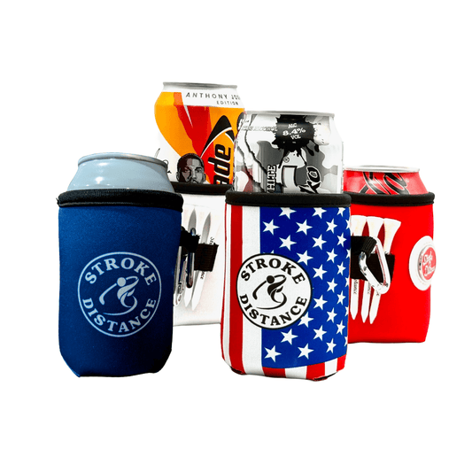 Patriotic Stars and Stripes Beverage Caddie 4 Pack, 3-in-1 Golf Insulator, Removeable Ball Marker, Bag Clip & Tees Combo